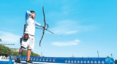 當(dāng)?shù)貢r(shí)間8月24日,在法國(guó)巴黎榮軍院旁的射箭訓(xùn)練場(chǎng)內(nèi),中國(guó)殘奧射箭隊(duì)在進(jìn)行適應(yīng)性訓(xùn)練。拉弓、瞄準(zhǔn)、松弦,中國(guó)隊(duì)選手甘俊射出正中靶心的一箭后,臉上露出笑容。他表示:“風(fēng)速、風(fēng)向?qū)穆潼c(diǎn)影響較大,我會(huì)盡快適應(yīng),調(diào)整到最佳狀態(tài)。”甘俊對(duì)自己參加的首屆殘奧會(huì)充滿期待。