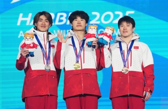 2月9日,楊龍嘯、李心鵬和齊廣璞(從左至右)在頒獎(jiǎng)儀式上。新華社記者 王松 攝