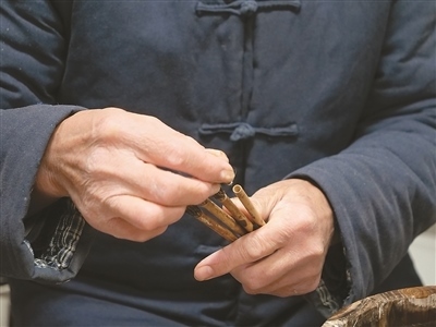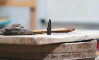 “無論是制作哪一類品種的宣筆,要能實現(xiàn)‘尖、齊、圓、健’均屬不易,需經(jīng)歷選料、水盆、制桿、裝套等多道工序、100多個環(huán)節(jié)。”以制桿為例,佘征軍介紹,工人需要先將筆桿磨平,再用工具在筆桿上挖出裝筆頭的洞,這套工藝沒有特定的參數(shù)可參考,全憑工人的手上感覺?!皩W(xué)徒入行,一般3到5年才能完整學(xué)會宣筆制造流程;要想做出一支優(yōu)秀的宣筆,至少10到12年的學(xué)習(xí)實踐;而要想學(xué)‘精’,需要一輩子的時間。”佘征軍說。