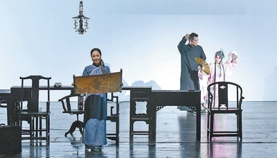 為繼承和發(fā)揚中國戲劇藝術傳統(tǒng),主創(chuàng)團隊挖掘京劇演員塑造話劇角色的潛能,將“唱念做打”融入話劇表演的“聲臺形表”。戲曲演員依靠扎實的基本功和豐富的表演經(jīng)驗,在臺詞和形體上有著不同于話劇演員的藝術表現(xiàn)。因此,《北京人》呈現(xiàn)出京劇與話劇“你中有我,我中有你,你不是我,我不是你”的效果,觀眾不易在觀演中看出演員的本行當及戲曲訓練的痕跡,但能感受到與以往話劇演出不同的風格。