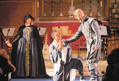 “往前走”的柯軍2016年和英國藝術(shù)家共同創(chuàng)作上演了湯顯祖和莎士比亞的“湯莎會”。中國昆曲演員和英國莎劇演員以中英雙語聯(lián)袂出演中英版《邯鄲夢》,這在昆曲和莎劇歷史上都是第一次,將原劇中四折最具代表性的段落作為主體,與《麥克白》《李爾王》《雅典的泰門》等莎士比亞經(jīng)典作品中的片段穿插交替,形成一種超時空的情境融合和人物體驗(yàn)的中西創(chuàng)新表達(dá)。