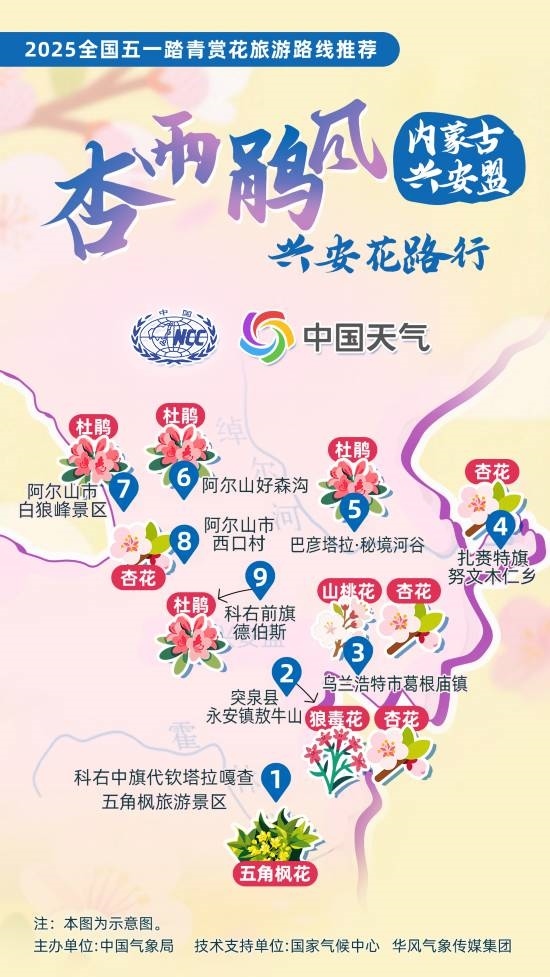 4月23日,中國(guó)氣象局參與文化和旅游部2025年全國(guó)“五一”文化和旅游消費(fèi)周活動(dòng),推出12條 “五一踏青賞花旅游路線”。每一條路線,都串聯(lián)起春日里最動(dòng)人的景致。在即將到來的五一假期,不妨從這些路線中挑選你心儀的一條,趁著春光正好,開啟一場(chǎng)與春日中國(guó)的浪漫邂逅。