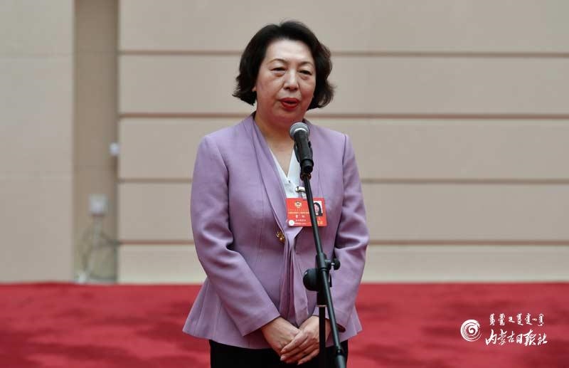 自治區(qū)政協(xié)委員曹紅回答記者提問(wèn)。內(nèi)蒙古日?qǐng)?bào)記者 馬建荃攝