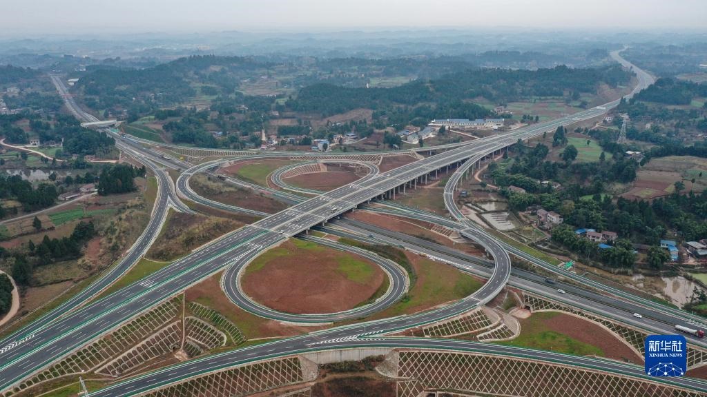 這是2020年12月30日拍攝的成資渝高速公路中和樞紐(無人機(jī)照片)。新華社記者 王曦 攝