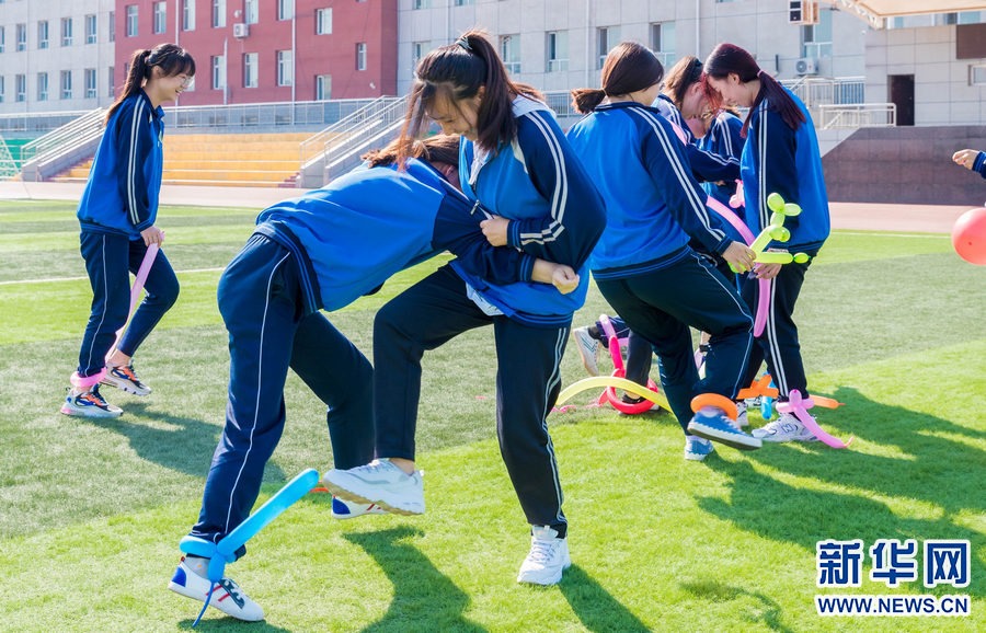高考臨近,內(nèi)蒙古自治區(qū)呼和浩特市第十二中學高三學生在備考之余開展形式多樣的快樂減壓活動,以自信、樂觀的心態(tài)迎接高考。新華網(wǎng)發(fā)(丁根厚攝)