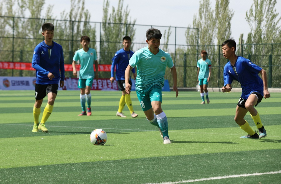 5月10日-17日,2021年內(nèi)蒙古自治區(qū)青少年足球聯(lián)賽暨青少年足球錦標賽在內(nèi)蒙古師范大學(xué)足球?qū)W院舉行。此次比賽,共有來自全區(qū)各盟市的31支代表隊參賽,各代表隊以盟市為單位組隊報名,通過比賽,將進一步探索主客場聯(lián)賽賽制,檢驗各地區(qū)足球青訓(xùn)體系建設(shè)成效,活躍校園足球文化,以期發(fā)現(xiàn)和選拔更多優(yōu)秀足球運動員。圖為比賽揭幕戰(zhàn)現(xiàn)場,烏海代表隊對陣鄂爾多斯代表隊。
